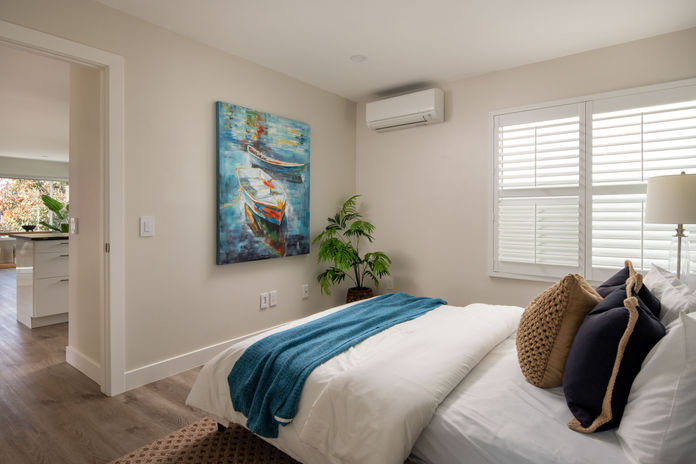 Enjoy easy coastal living in this tastefully updated beach house in North Mission Beach ideally located on the ocean side of Vanitie Court, bringing you steps to countless neighborhood amenities including the Pacific Ocean, Mission Bay, and tons of shops and restaurants. Meticulously renovated in 2020, this 2 bedroom, 2 full bathroom home enjoys an open concept kitchen with a breakfast bar that flows seamlessly to the dining area and living room outfitted with a peak-a-boo “surf check window,” electric fireplace, and motorized shades. Stairs lead to a proper landing and flat roof redone in 2020 with a future roof deck in mind. A stunning primary bedroom is on floor 2, and a spacious bedroom with ensuite bathroom is on the entry level with patio access. Property features a gated carport and an attached 1-car garage currently used as a bonus room with laundry. Additional recent upgrades include designer finishes, zoned air conditioning throughout, newer dual pane windows and doors, newer stucco, custom fencing, hardscape, drainage, and more.
